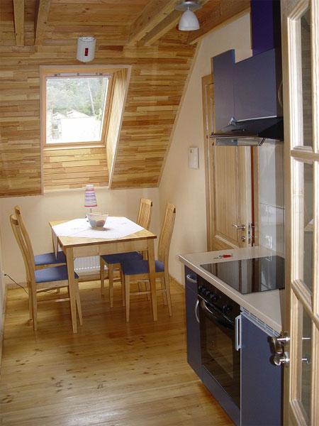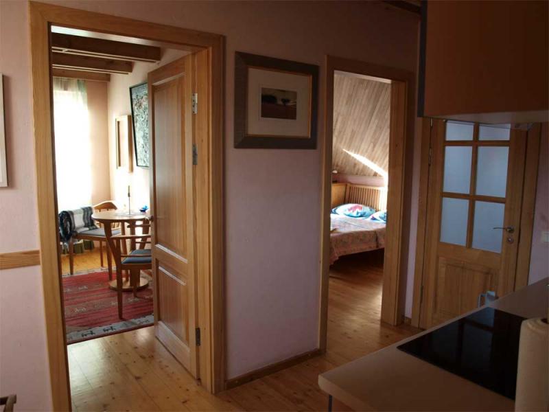 Im Ferienhaus "Aika" befindet sich eine Galerie mit Bildern bekannter litauischer und deutscher Künstler. Im Obergeschoss befinden sich 3 Ferienwohnungen mit jeweils 2 getrennten Schlafzimmern mit Doppelbetten, einem großen Balkon, sowie einer Küche mit Eßplatz und einem Bad.